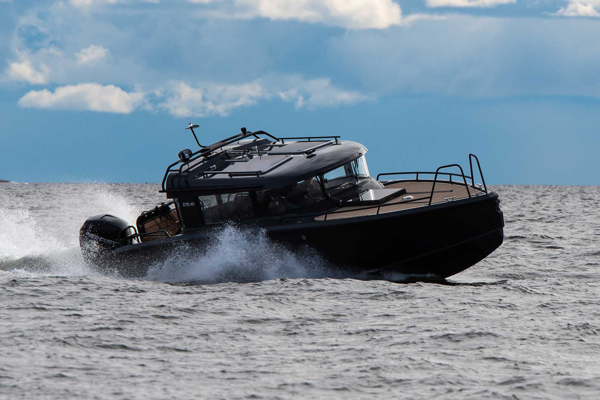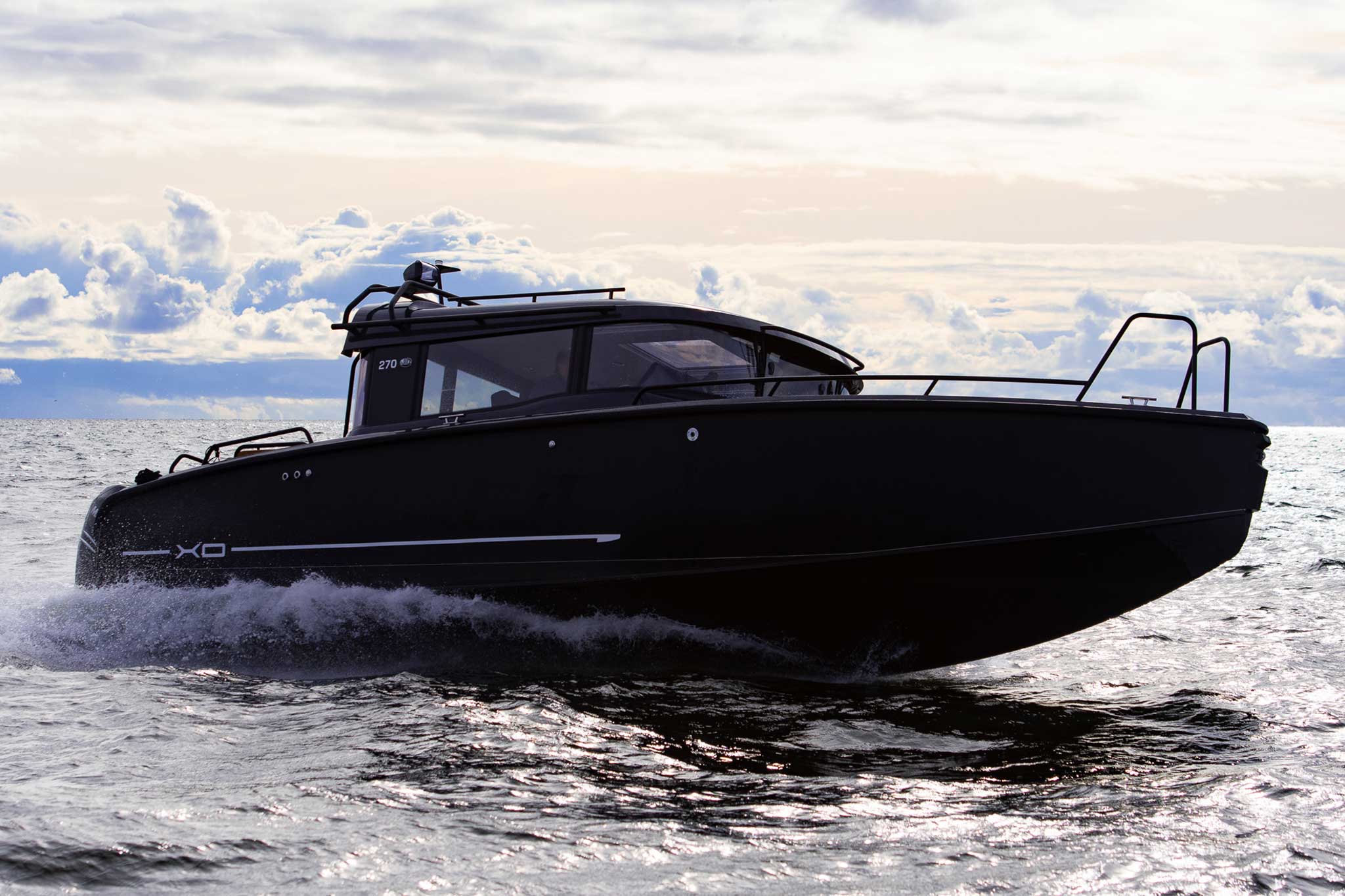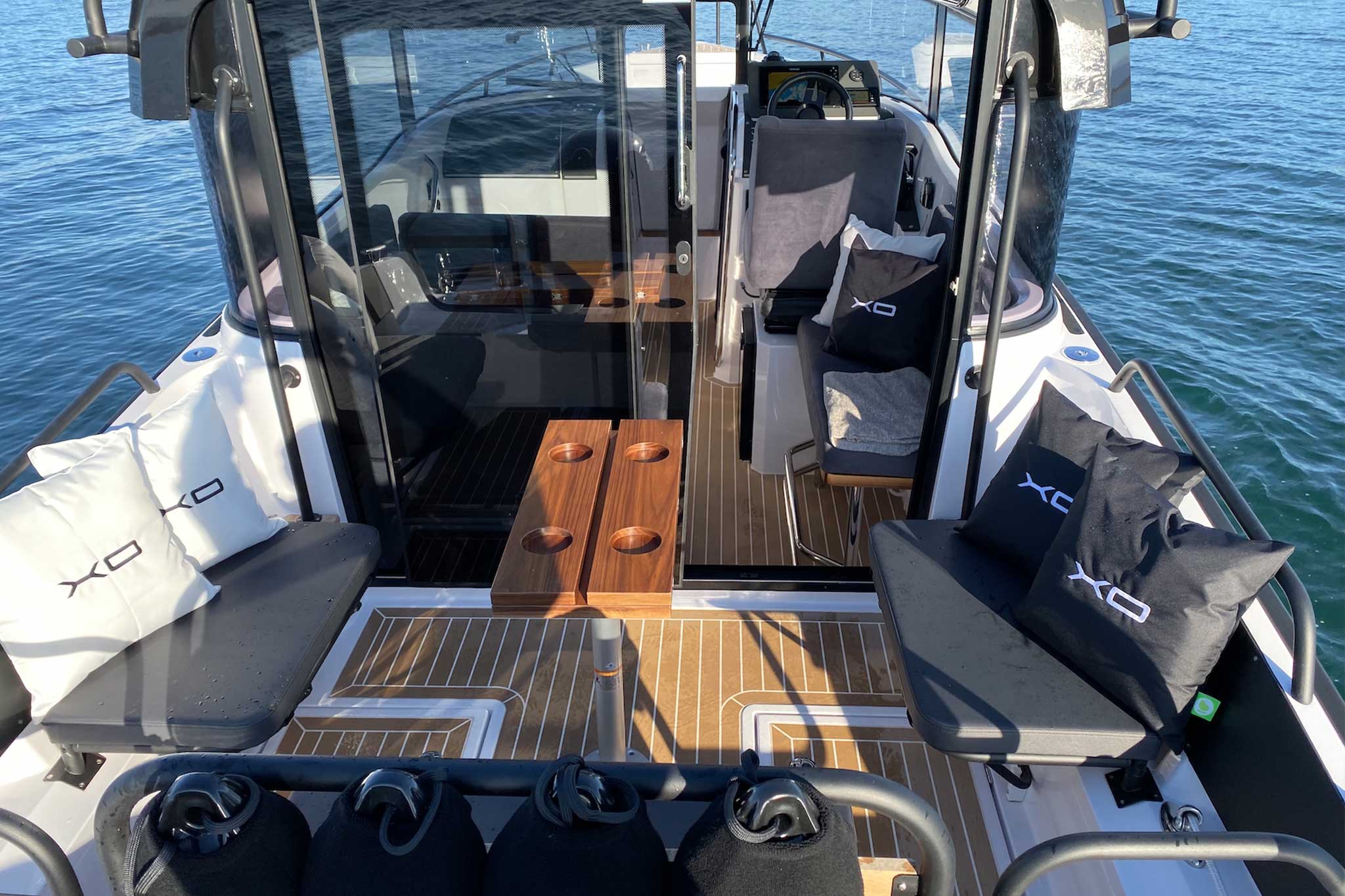 EXPLR 10 Sport + model adds a two-berth sleeping cabin instead of the open forward cockpit. The OB version is available with either a single or twin outboards, and it features a protected aft deck area with various seating options.