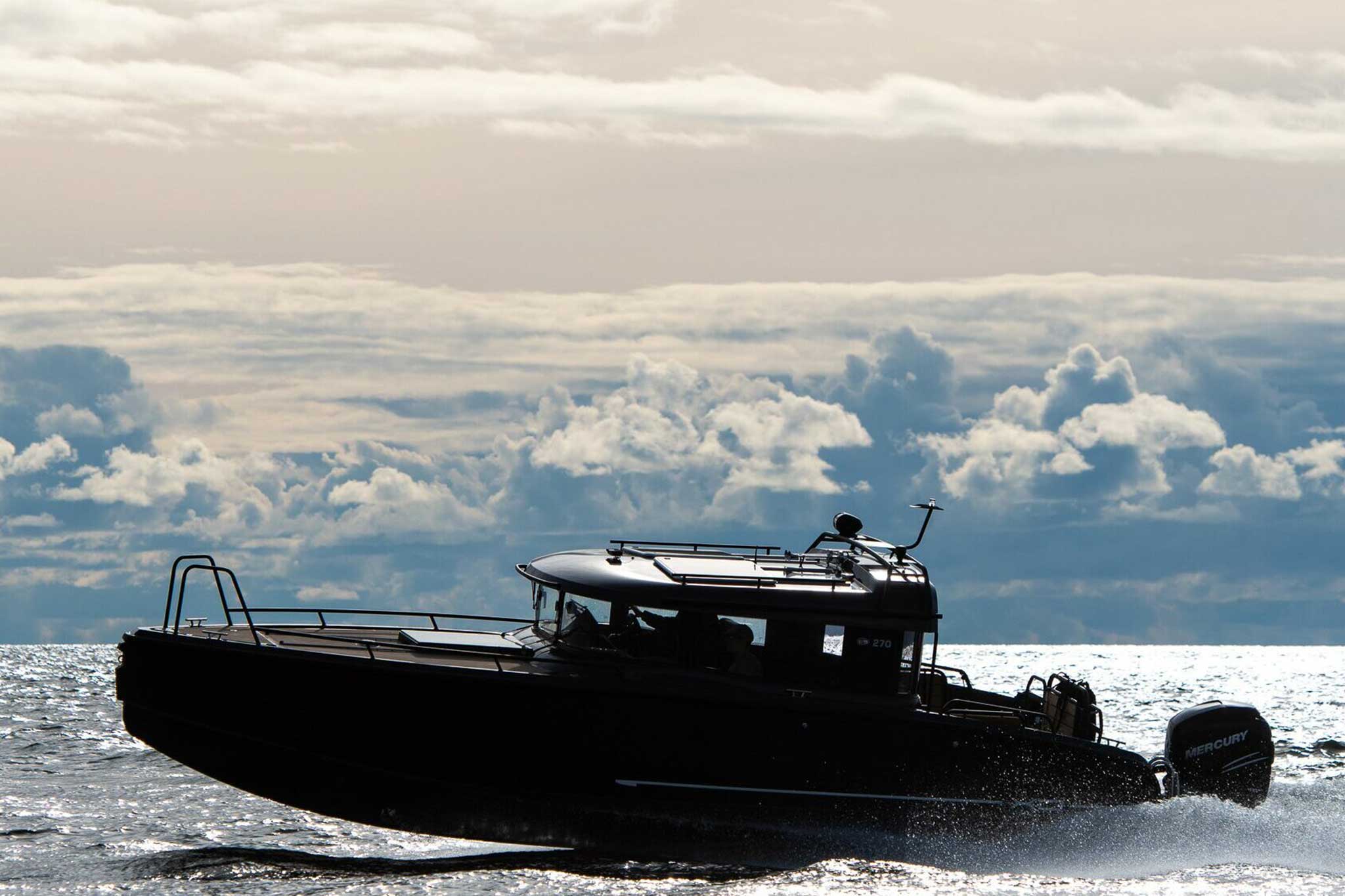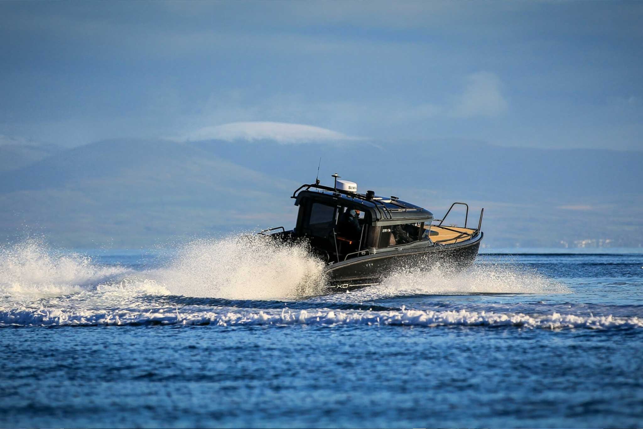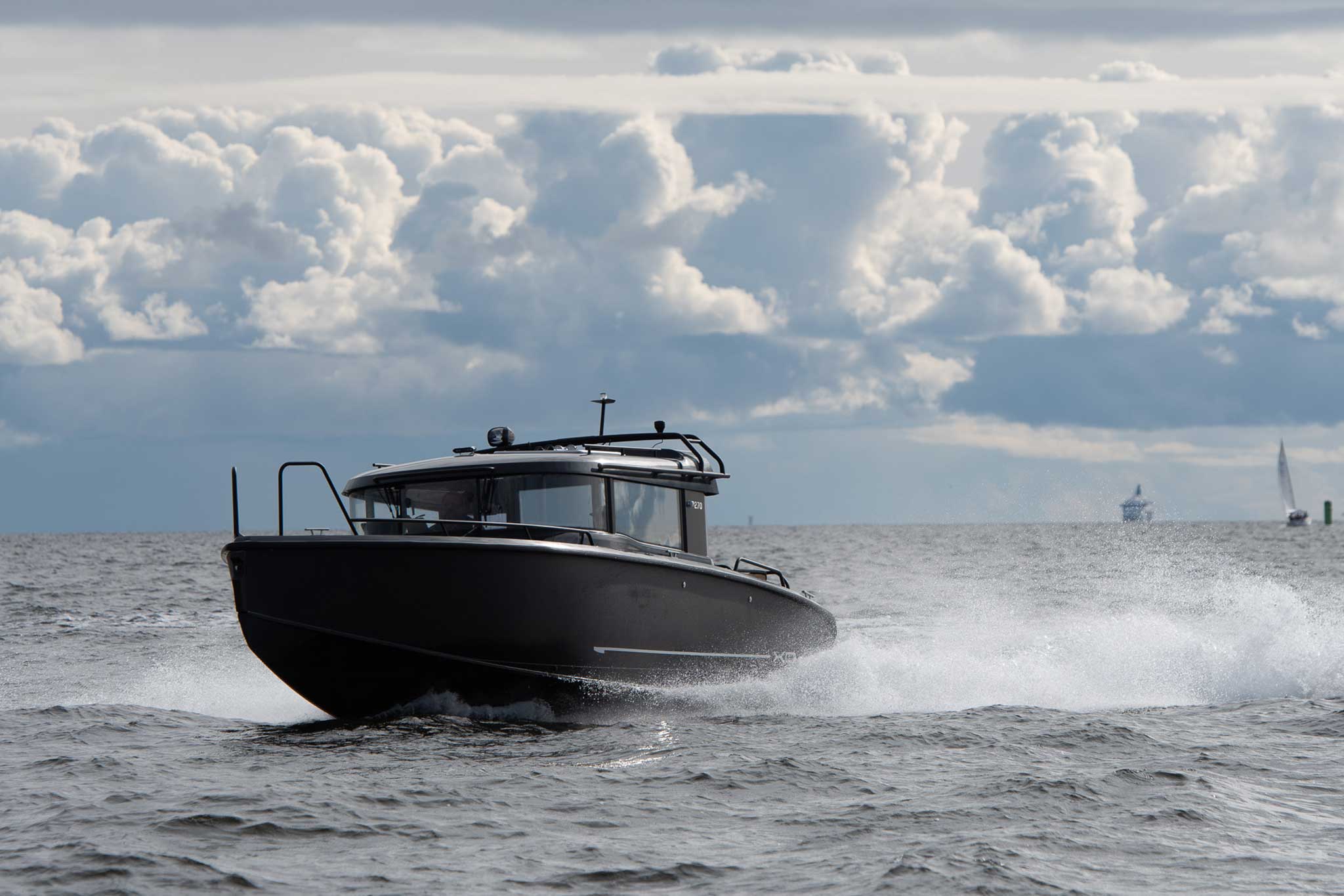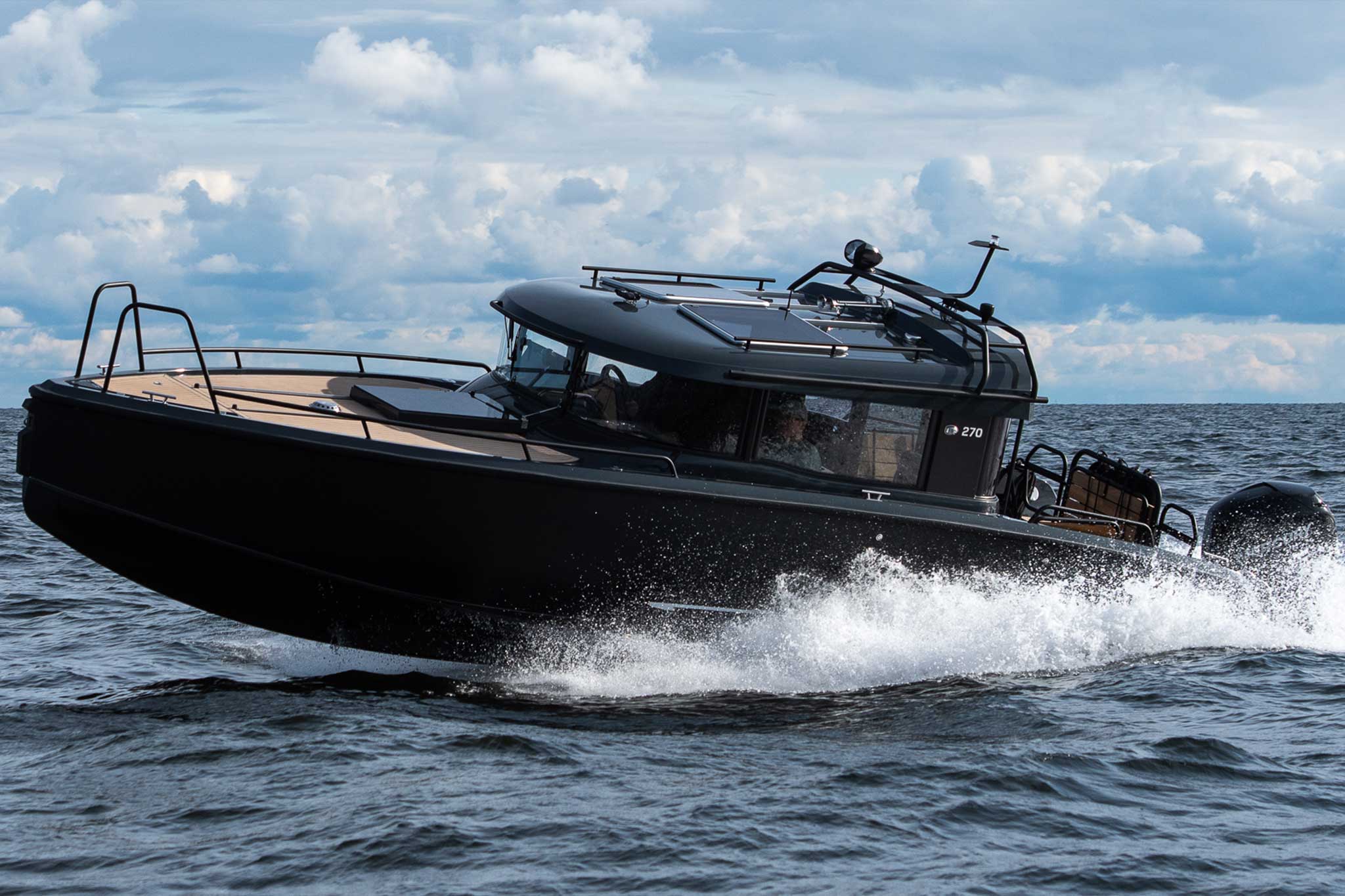 EXPLR 10 Sport + model adds a two-berth sleeping cabin instead of the open forward cockpit. The OB version is available with either a single or twin outboards, and it features a protected aft deck area with various seating options.